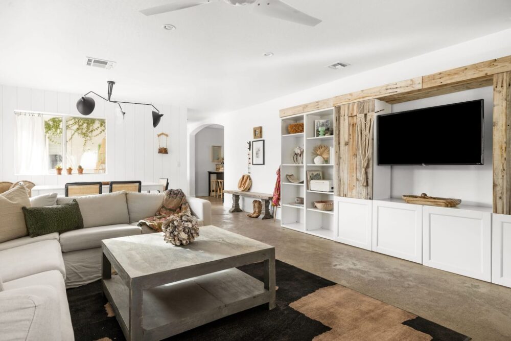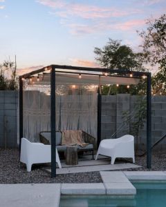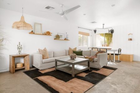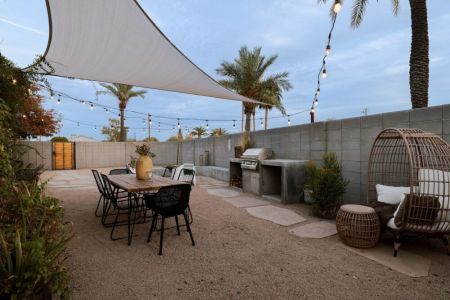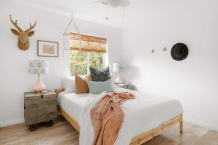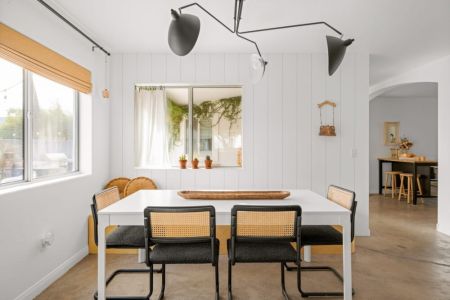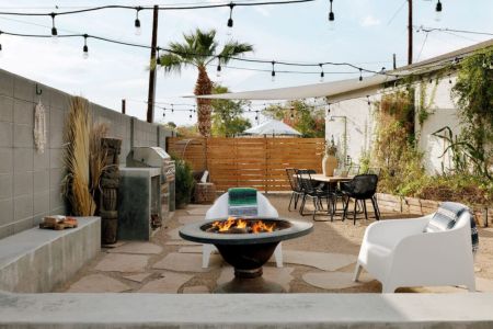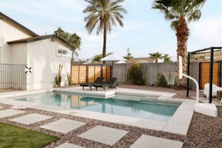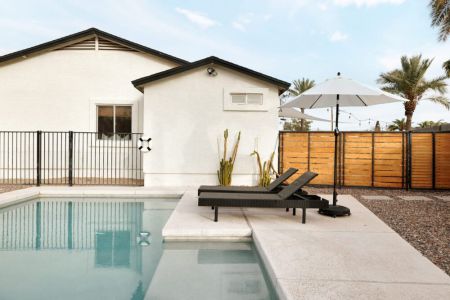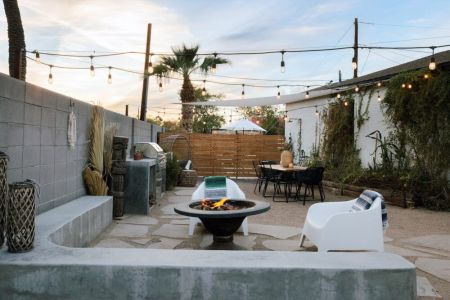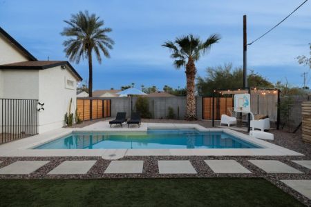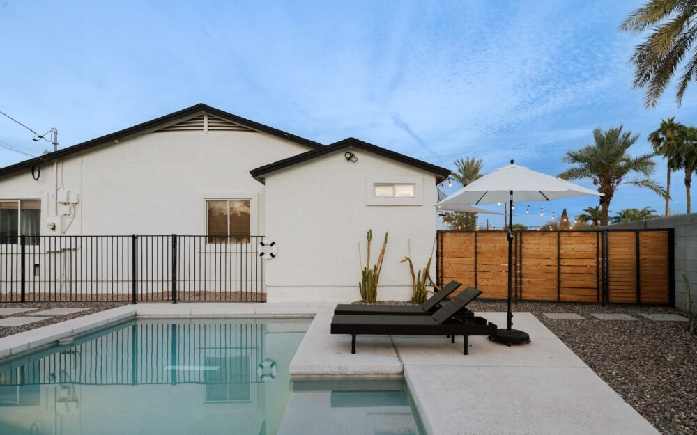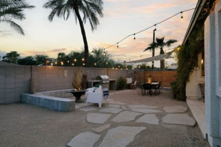 Discover PHX Stays peaceful retreat in this California style bungalow featuring an eclectic and fresh interior. Professionally designed and curated contemporary furnishings, an outdoor oasis with pool (not heated) , fire pit, outdoor dining and BBQ .