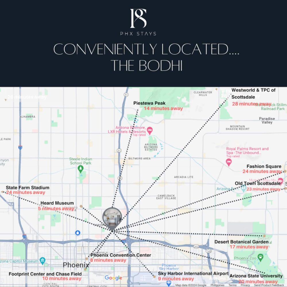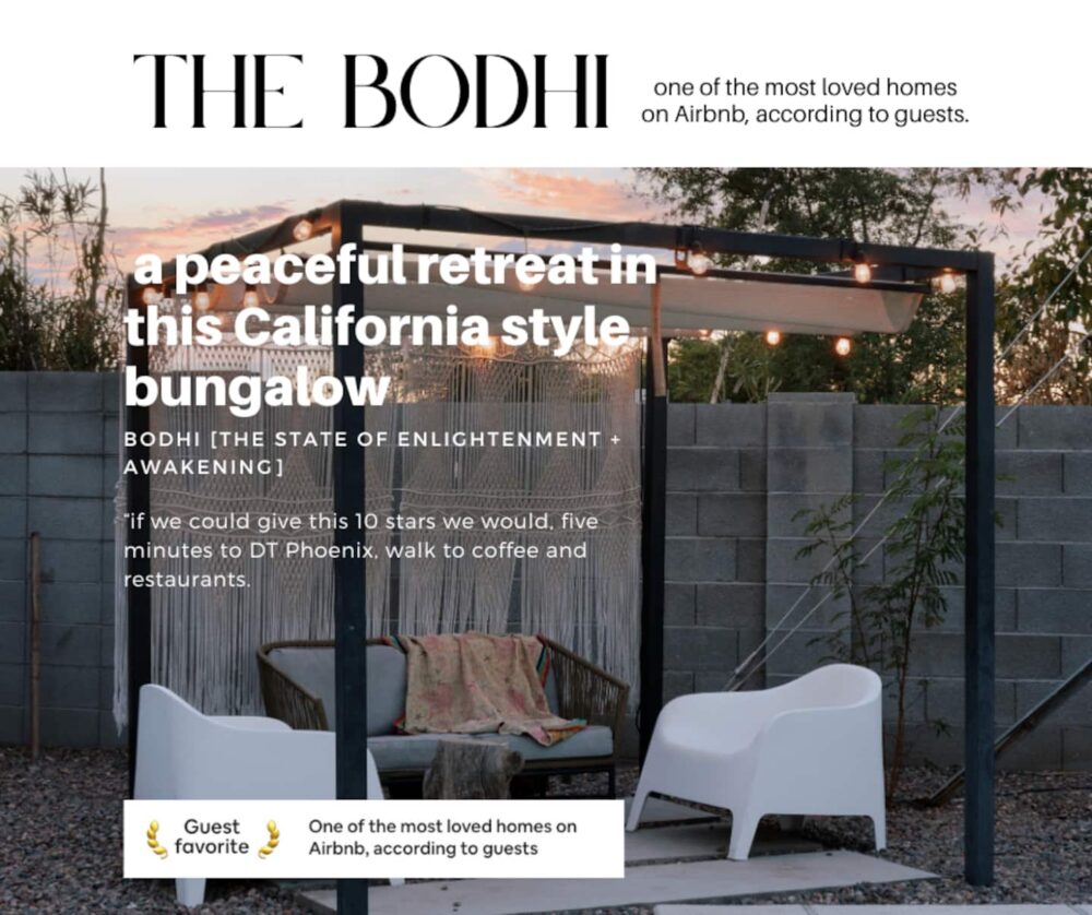 The Bodhi is a charming 4 bedroom home in the heart of historic Phoenix. Our home has been meticulously designed for style, comfort and a peaceful escape.