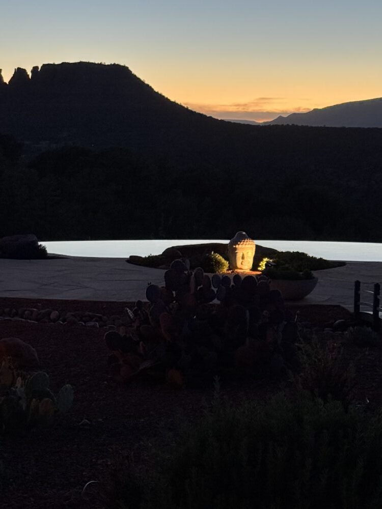 Our exclusive Sedona retreat offers thoughtful luxury in an intimate setting perfect for relaxation and rejuvenation. We've woven elements of mindfulness into every corner: handpicked crystals, vintage brass singing bowls, meditation spaces with mountain views, and carefully placed pieces that invite you to slow down and breathe deeper.