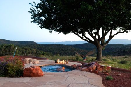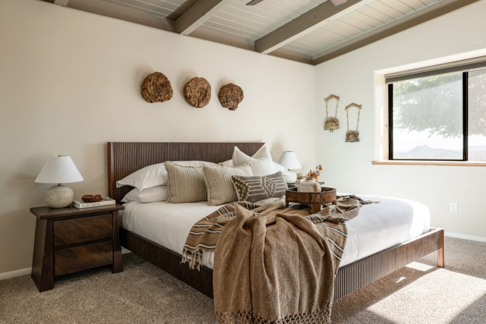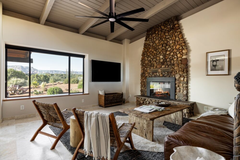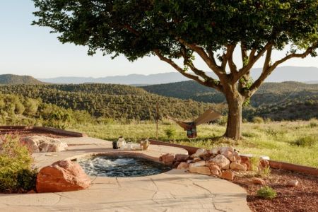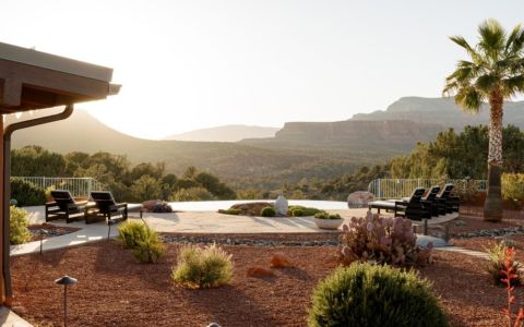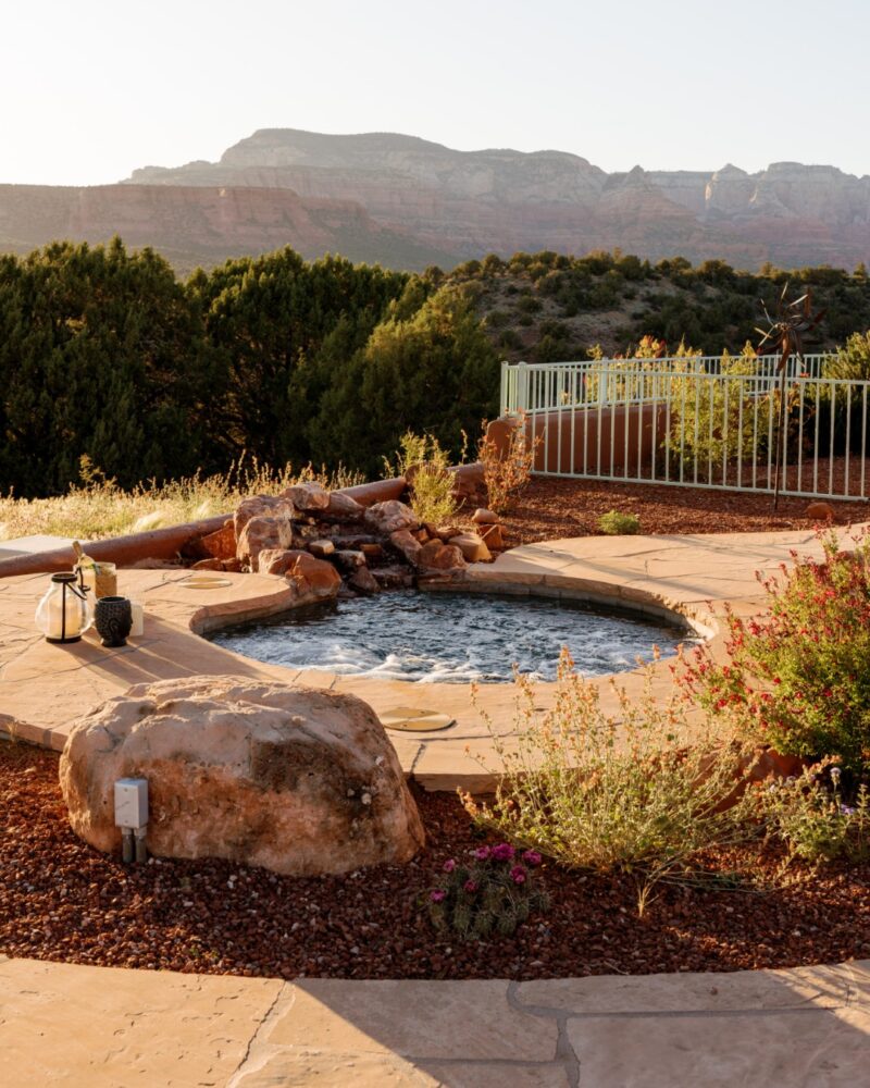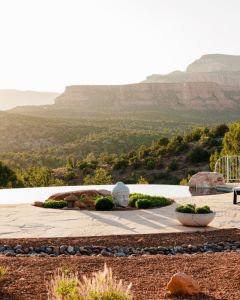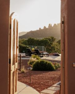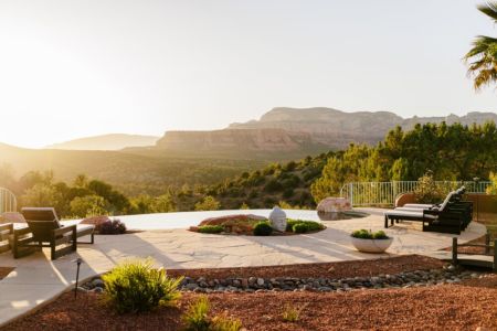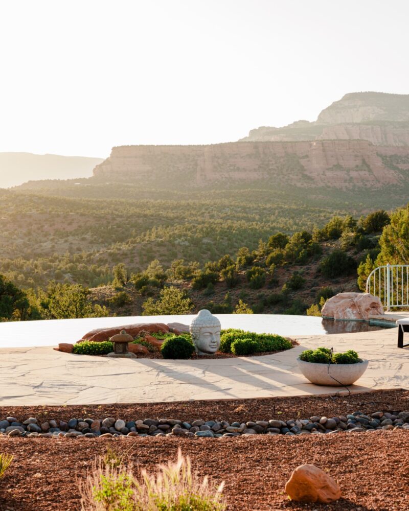 Our exclusive Sedona retreat offers thoughtful luxury in an intimate setting perfect for relaxation and rejuvenation. We've woven elements of mindfulness into every corner: handpicked crystals, vintage brass singing bowls, meditation spaces with mountain views, and carefully placed pieces that invite you to slow down and breathe deeper.