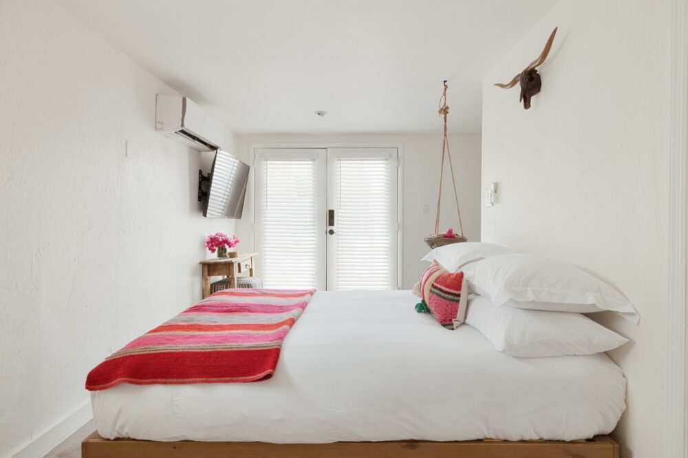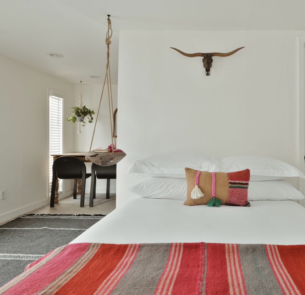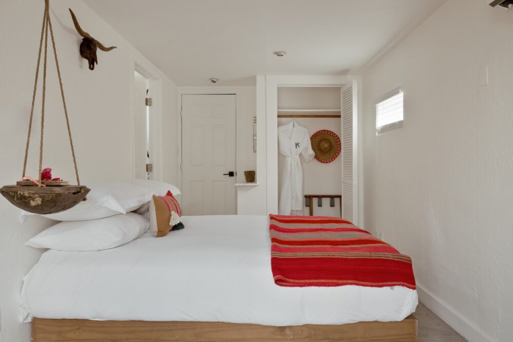 📍One Bedroom Studio - a cozy sanctuary features a plush FULL-size bed where you'll drift off surrounded by the same spirited energy that fueled Frida's most celebrated works. Ample closet space with a cozy robe and luggage rack.