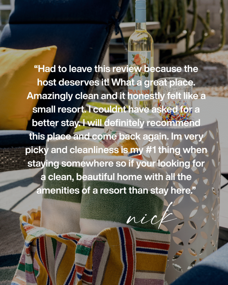 We’re committed to keeping each PHX Stays home in pristine condition so you can fully relax during your stay. From time to time, our trusted service providers (landscapers, pool care, pest control, etc.) may stop by to care for the property. These visits are scheduled carefully to minimize disruption, and they help ensure that everything stays beautiful and well-maintained for you and future guests.