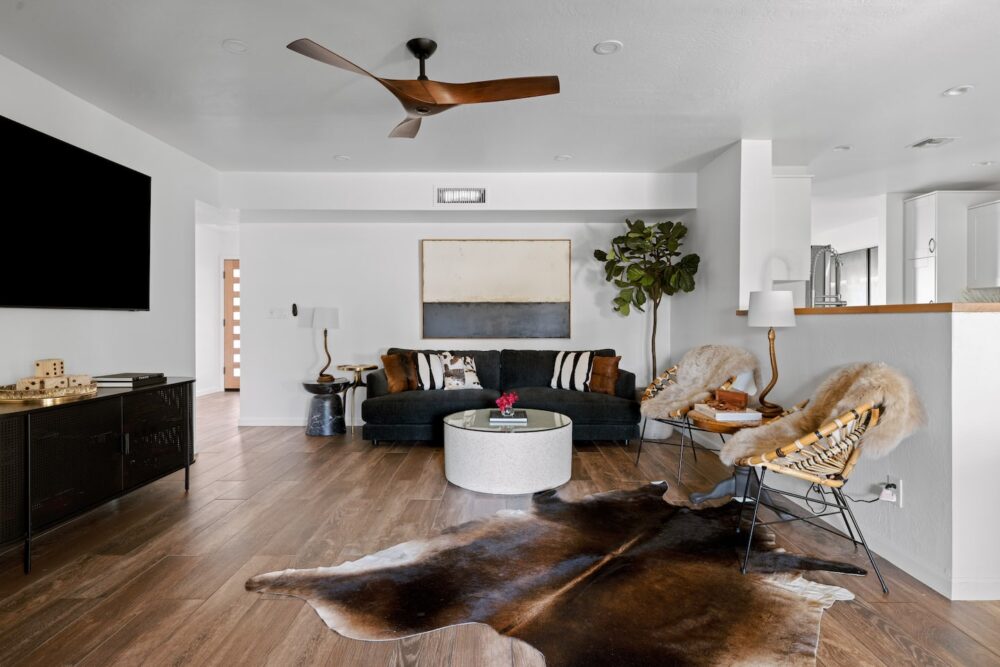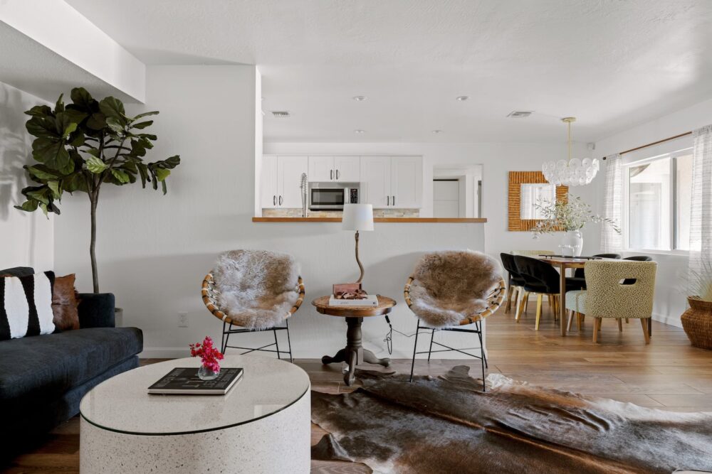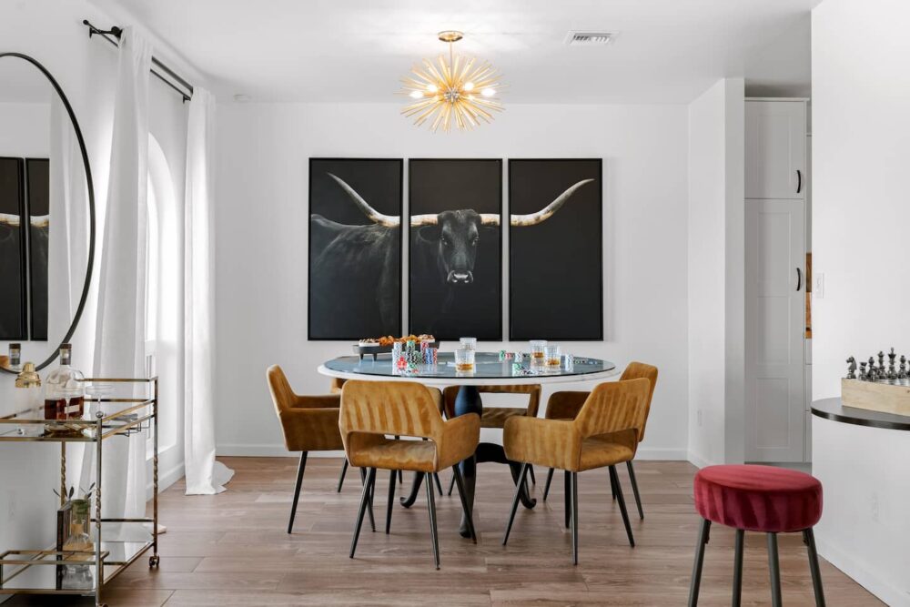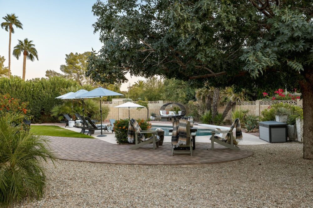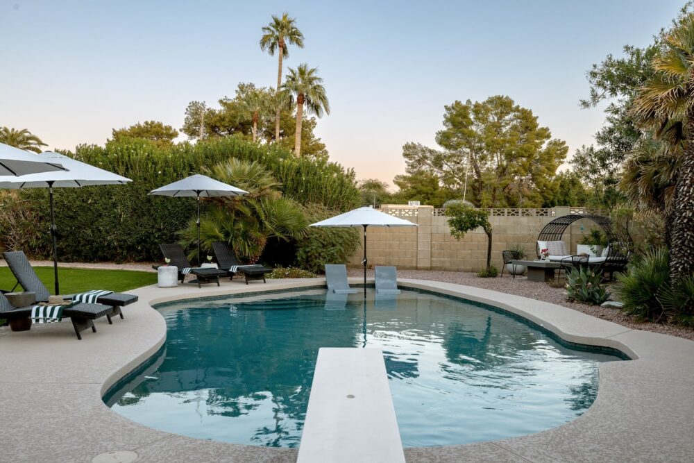 The Bloom is a 5 bedroom single family home curated for relaxation to unwind and enjoy all that Scottsdale has to offer. You will be treated to beautiful indoor and outdoor spaces that include a private, heated swimming pool (additional fees apply) , a large sun-splashed backyard, and a game room with a pool table. Please note: there is one step down into the game room.
