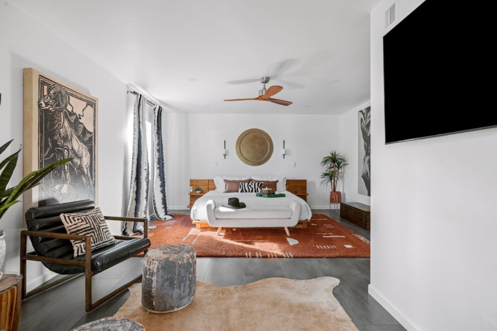 Bedroom 1: King Bed, Smart TV with sitting area and private access to the outdoors, private shower and large walk in closet.