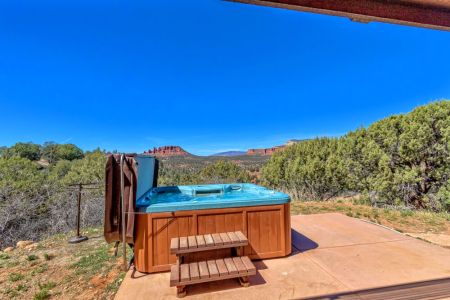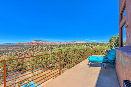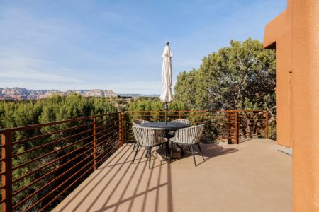 FEATURED as one of the BEST VILLA's in SEDONA! Walking into this private Villa in Sedona feels like stepping into a sacred space. This magical 2.4 acre site sides to National Forest w/ shared INFINITY POOL & 360 views. This one bedroom, 2-bath villa is perfectly located showcasing stunning vistas of Thunder Mountain, Chimney Rock, Sugarloaf, Bell Rock, + Courthouse Butte. Nestled at the end of a private road, our Villa offers an unparalleled retreat w/complete seclusion and spectacular views.