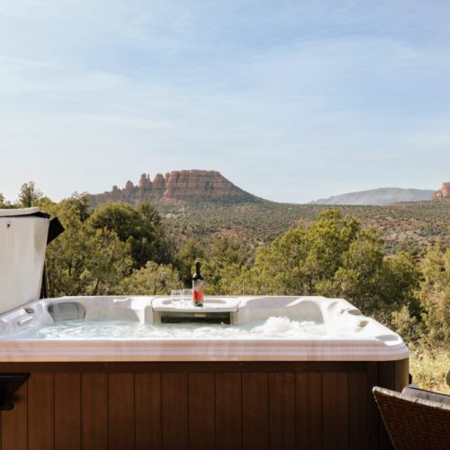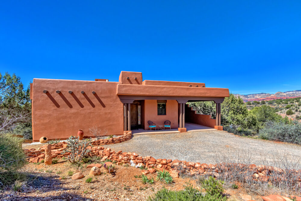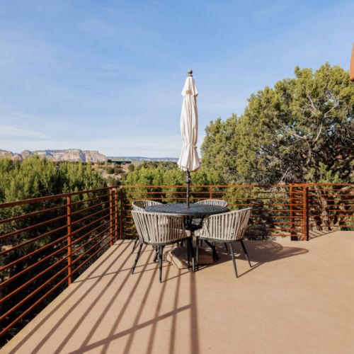 FEATURED as one of the BEST VILLA’s in SEDONA! Walking into this private Villa in Sedona feels like stepping into a sacred space. This magical 2.4 acre site sides to National Forest w/ shared INFINITY POOL & 360 views. This one bedroom, 2-bath villa is perfectly located showcasing stunning vistas of Thunder Mountain, Chimney Rock, Sugarloaf, Bell Rock, + Courthouse Butte. Nestled at the end of a private road, our Villa offers an unparalleled retreat w/complete seclusion and spectacular views.