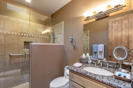 Master retreat features a King Bed, luxury linens, full bathroom w/shower and it's own private doors that lead to the balcony. Master suite comes TV-free by design. Studies show that mountain views, forest trails, and starry skies have 100% fewer commercials than cable.