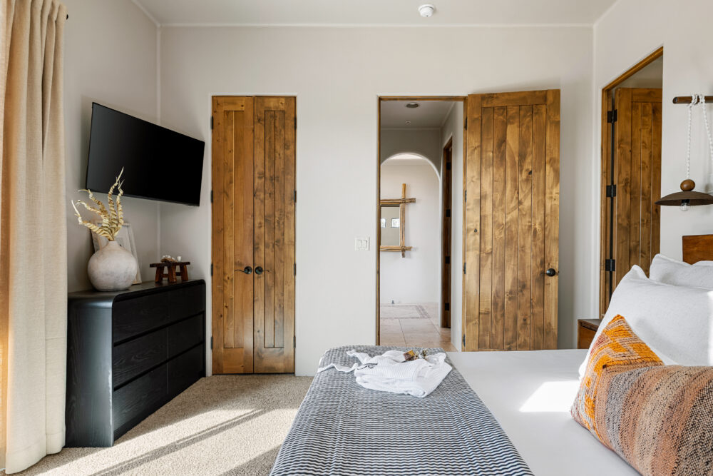 ☀︎Elegant master bedroom featuring a king bed w/private balcony access