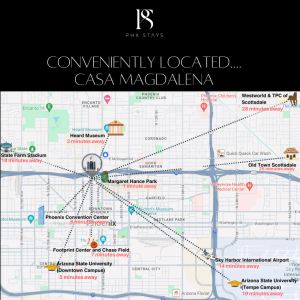 We’re committed to keeping each PHX Stays home in pristine condition so you can fully relax during your stay. From time to time, our trusted service providers (landscapers, pool care, pest control, etc.) may stop by to care for the property. These visits are scheduled carefully to minimize disruption, and they help ensure that everything stays beautiful and well-maintained for you and future guests.